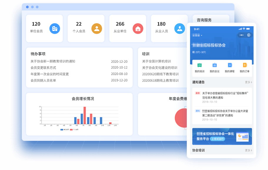 安訊協(xié)會一體化服務(wù)平臺,是按照“互聯(lián)網(wǎng)+社會組織”的理念,采用 “云計算、大數(shù)據(jù)”等先進信息技術(shù),立足協(xié)會服務(wù)會員、規(guī)范市場秩序、開展行業(yè)自律等需求,建立的一體化管理與服務(wù)平臺,集成會員、從業(yè)人員、從業(yè)單位管理,通知、培訓(xùn)、會議、咨詢、資源、直播服務(wù),以及門戶網(wǎng)站、移動應(yīng)用,實現(xiàn)協(xié)會各業(yè)務(wù)數(shù)字化整合,全面提升各方獲得感,為協(xié)會服務(wù)國家、社會、行業(yè)提供全面的信息化支撐。